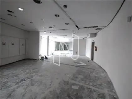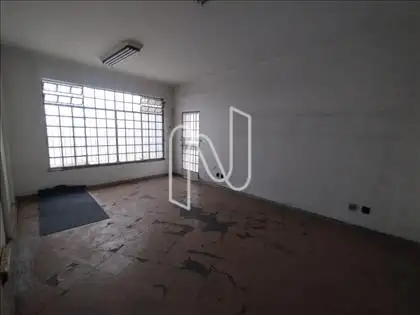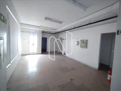 1º pavimento: Amplo salão com vão livre, 02 banheiros, piso em granilite, frente com fechamento em vidro;